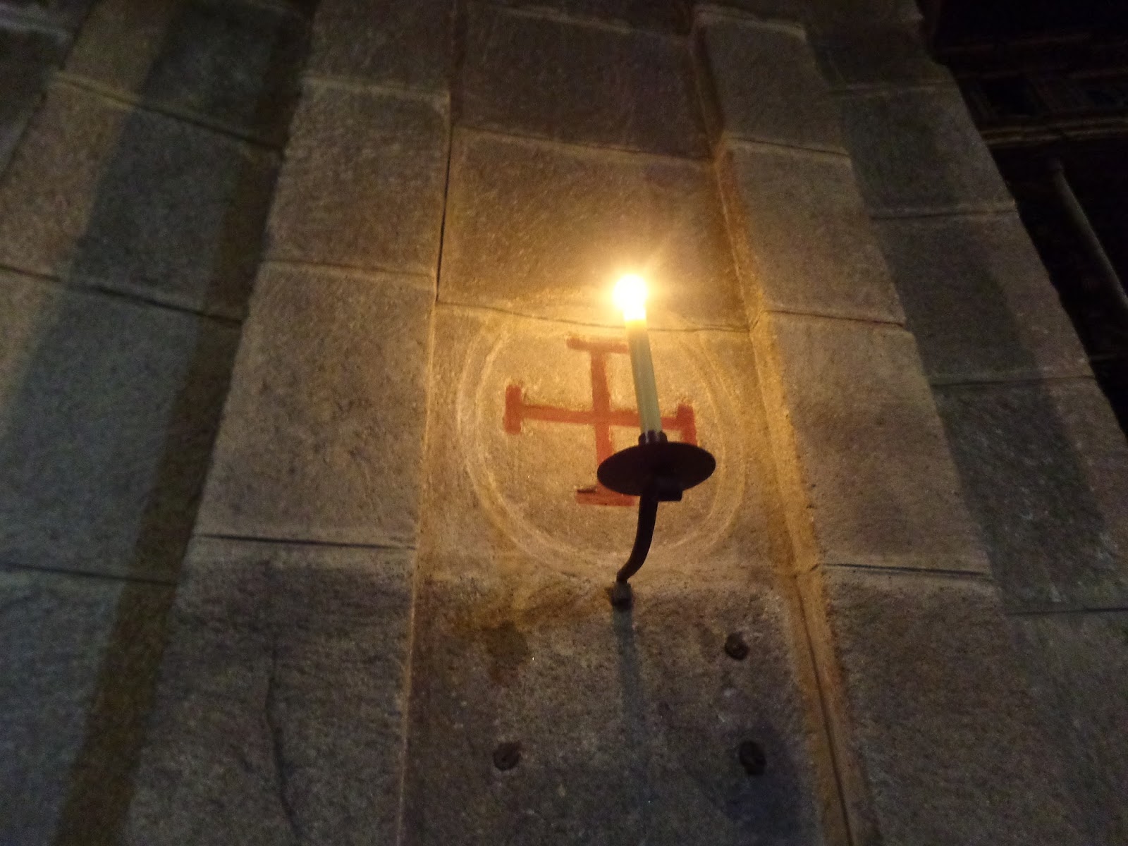 | Velas en cada una de las cruces grabadas en la nave lateral derecha |